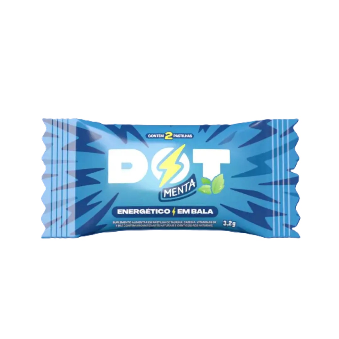 A Dot é uma bala refrescante e funcional, desenvolvida para oferecer energia e foco de forma prática e rápida. Ideal para quem busca um impulso extra no dia a dia, ela combina 40mg de cafeína, 300mg de taurina e vitaminas B6 e B12 por unidade, ajudando a melhorar o desempenho físico e mental.